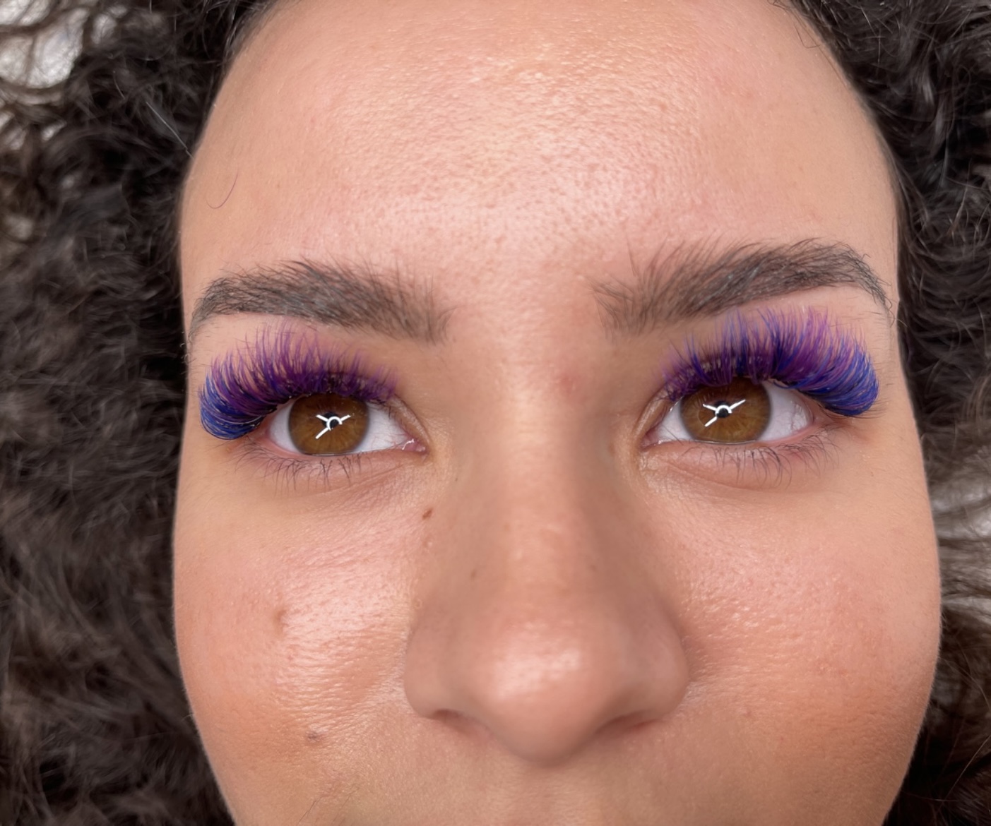 A 90-minute color lash fill involves applying colored eyelash extensions on new hair growth (new lashes) to give your lash line a full and refreshed look. The service begins by removing any long or overgrown colored eyelash extensions followed by replacing and applying new extensions.