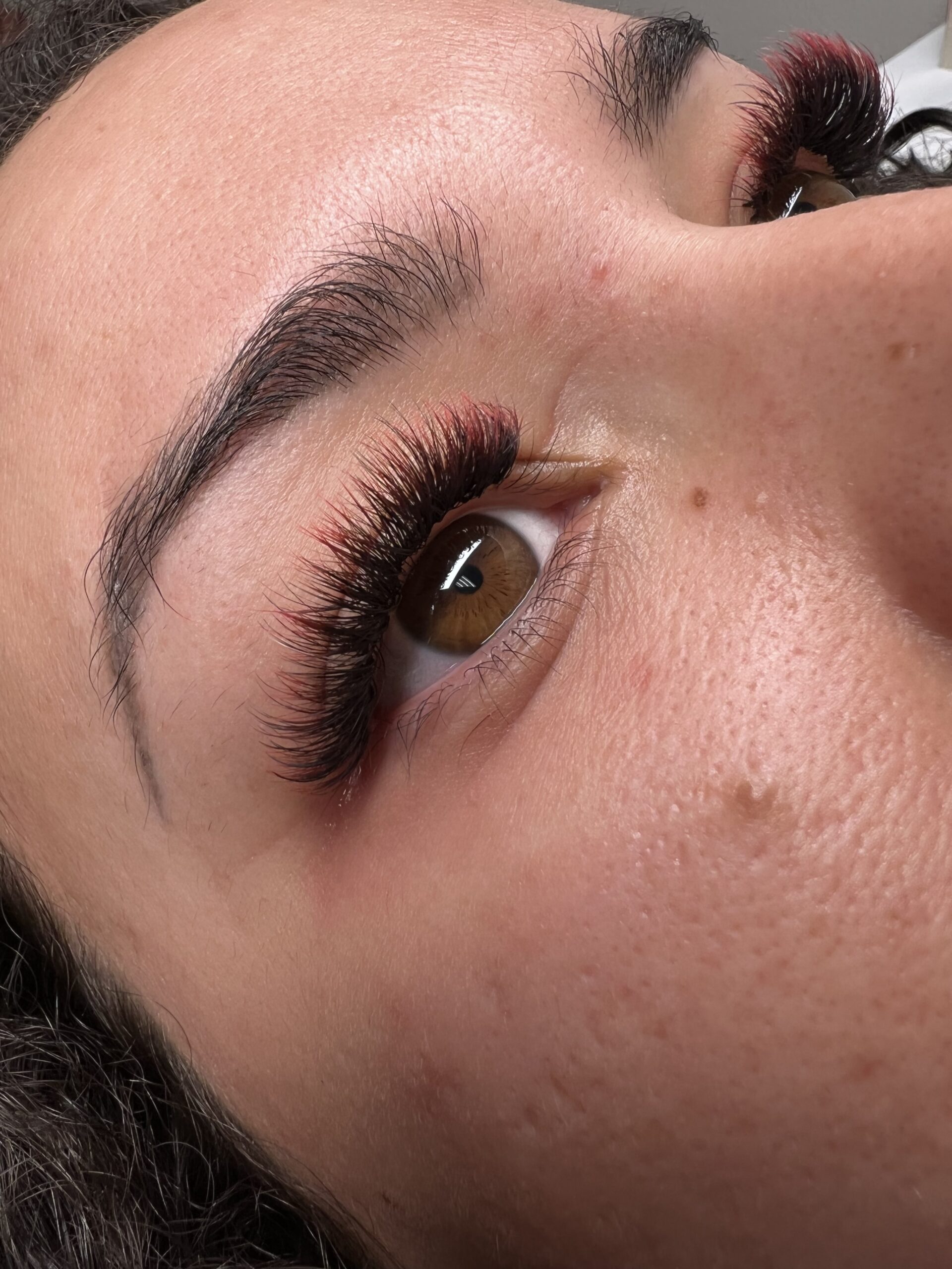 Colored eyelash extensions are regular lash extensions that have been dyed with a permanent color. They come in a variety of colors ranging from brown, black, white, orange, red, pink, purple, green, yellow, and blue.